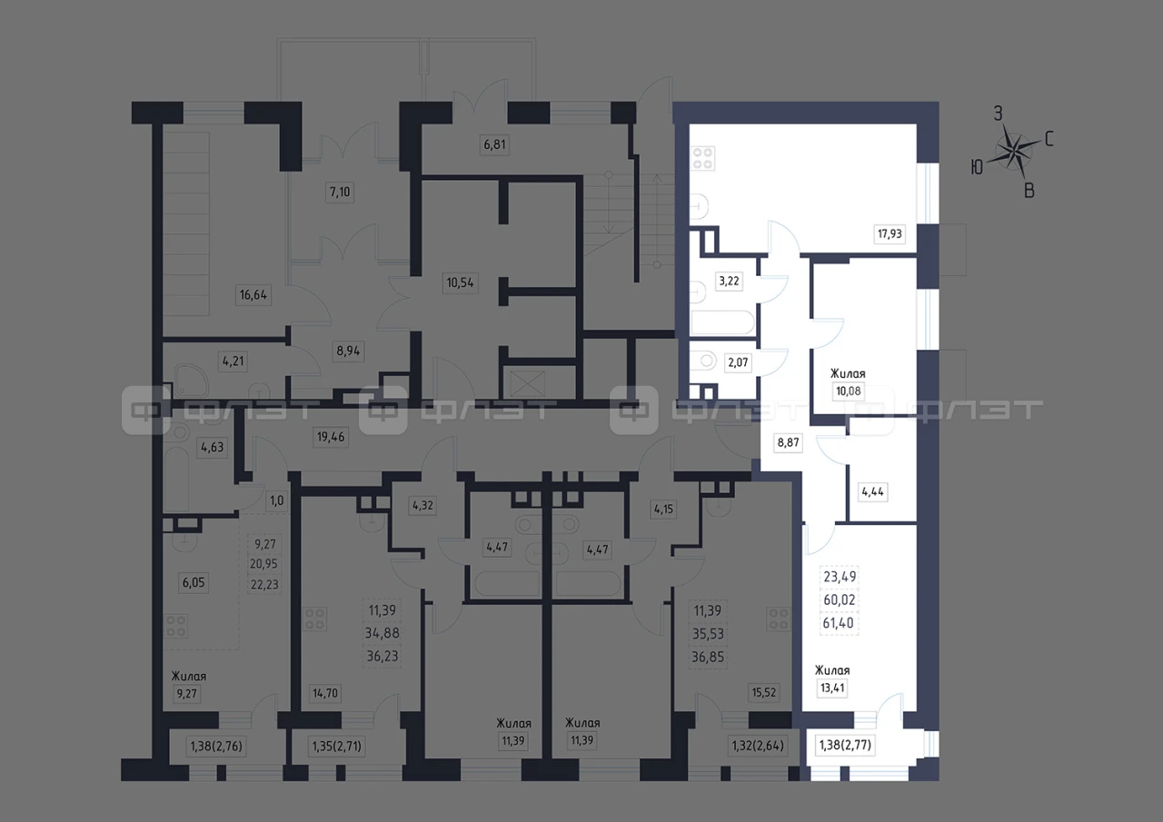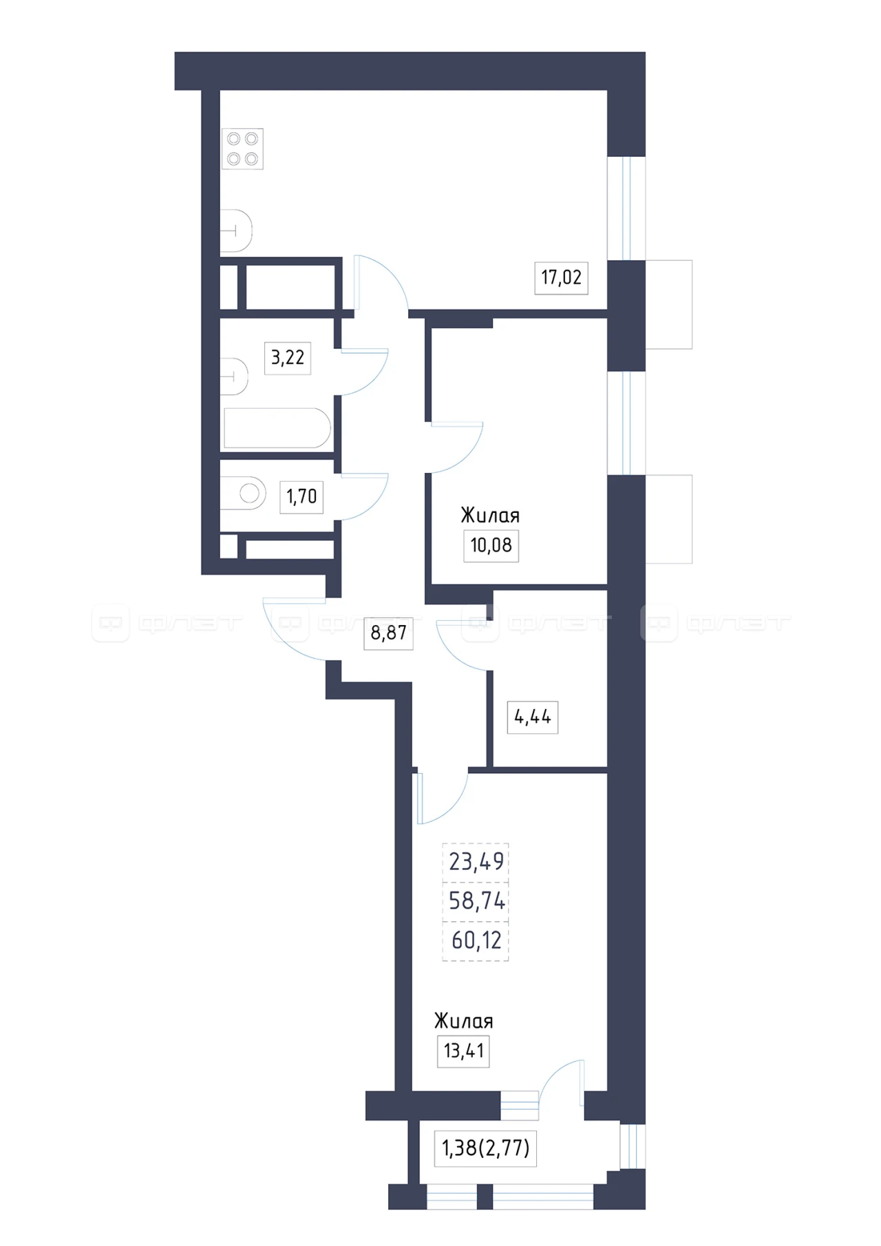 - 60.12/23.49/17.02 м²