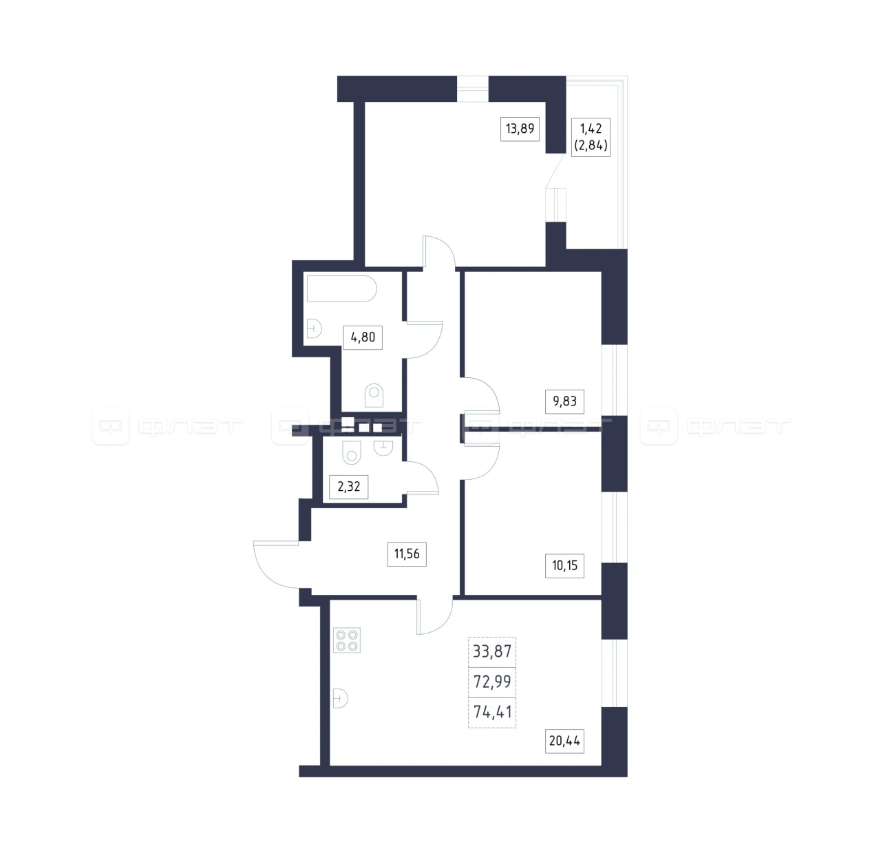 - 74.41/33.87/20.44 м²