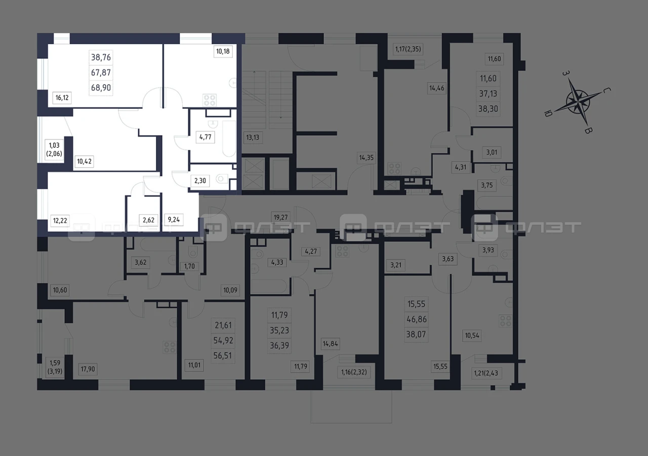 - 68.9/38.76/10.18 м²
