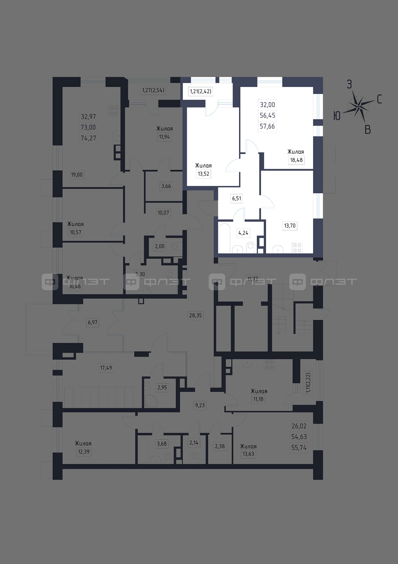 - 57.17/32/13.7 м²